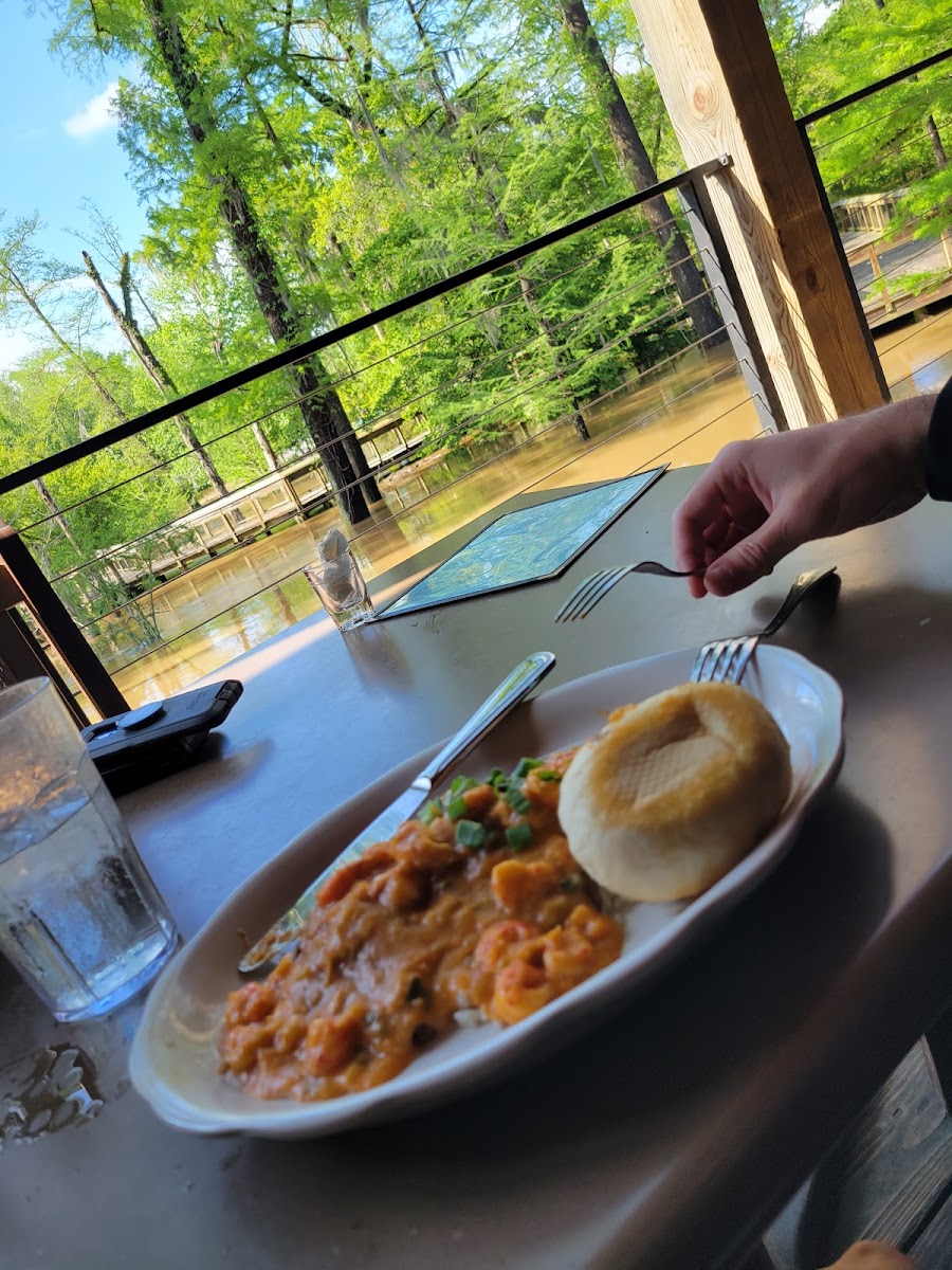 I really love this restaurant! I went there for Valentine’s Day with my mom and husband. While we were given an hour to wait, it went by really fast. They use a text messaging system to let you know when your table is ready. You can refresh it for accurate info. The atmosphere is great! The lighting is perfect for conversation. The inside is lovely but the outside is absolutely gorgeous at night!! The food is amazing as well! There are a lot of seafood options, some non seafood, and maybe three vegetarian options. However, whatever you decide will be flavorful! It’s a great taste of Louisiana foods.