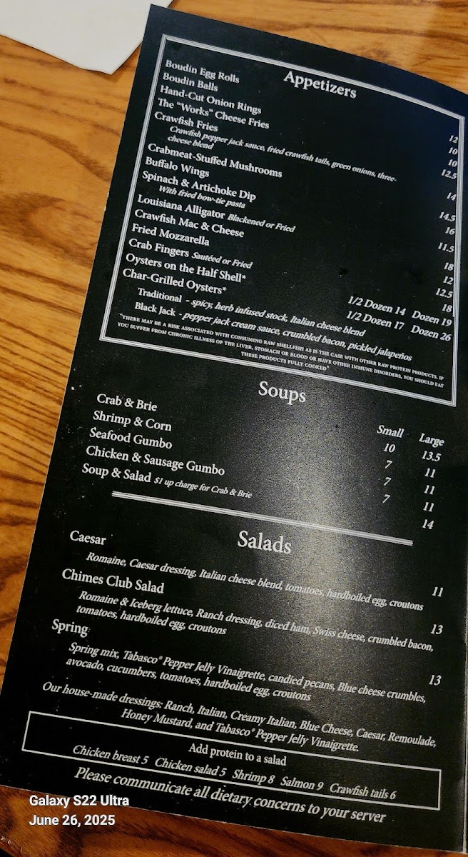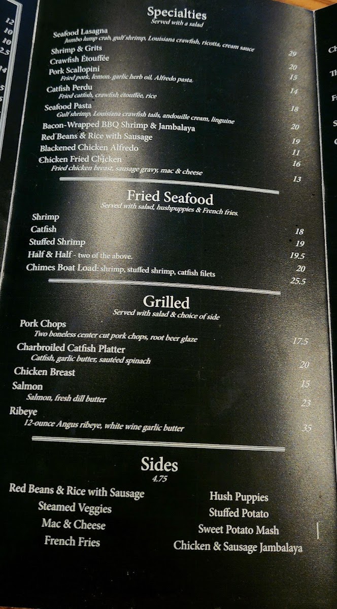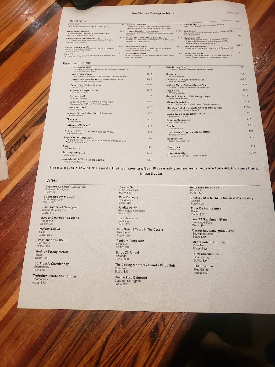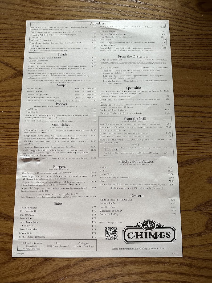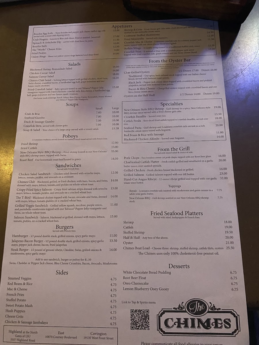 The Chimes Covington Menu